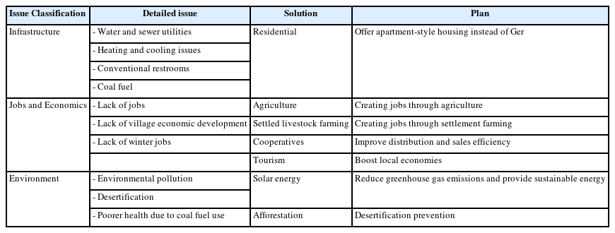 Establishment Plan for Sustainable Villages through Resolving Mongolian Ger District Issues†