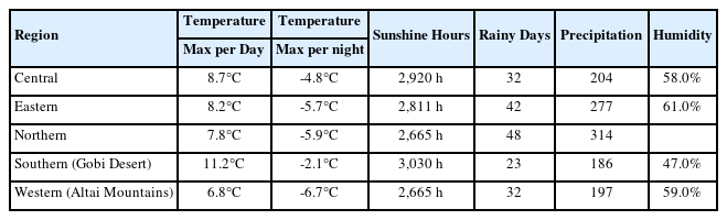 Regional Climate and Weather Statistics in Mongolia (WorldData, 2025)