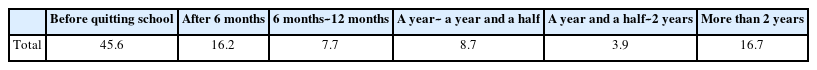However, a significant proportion of youth also dropped out for reasons such as “feeling that school was meaningless”, “psychological or mental issues”, “disliking studying”, “inability to adapt to the school environment”, or “problems with school friends”, with each reason accounting for at least 10% and up to 37%. Over 40% of the youth reported regretting their decision to drop out. Many respondents stated that they would not have chosen to drop out if there had been appropriate career exploration support policies and interest from teachers. Only 45.6% of the youth had decided on a career path before dropping out, and 16.7% took more than two years, indicating that many adolescents are dropping out without clear goals [Table 4-6] (Ministry of Gender Equality and Family, 2022).
