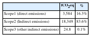 Table 5 categorizes GHG emissions into three components: scope 1, scope 2, and scope 3.
