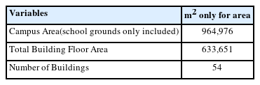 Status overview of buildings on Yonsei University: Campus Area, Total Building Floor Area, Number of Buildings
