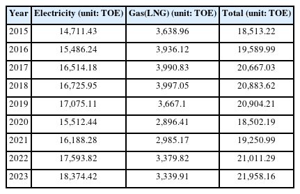 Table 8 focuses exclusively on electricity and natural gas (LNG) consumption during nine years. These two energy sources represent over 99% of total energy consumption. Over this period, the energy consumption ratio of electricity to LNG has remained approximately 4.7:1.